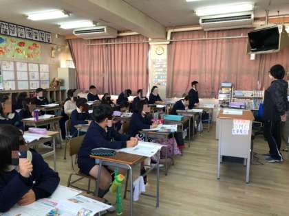 4年生の様子です。上段が1組、体育です。下段が2組、理科の様子です。