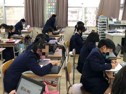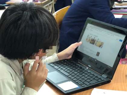 4年生の様子です。タブレットを使って調べ学習をしていました。「ふるさとの食を伝えよう」という題材で、リーフレットづくりをします。