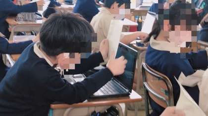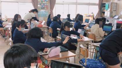 4年生の図工です。木版画の制作に取りかかりました。まずは彫刻刀の正しい使い方を動画で学習します。プリントのQRコードを読み取らせて動画を再生していました。
