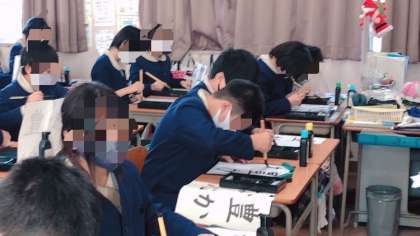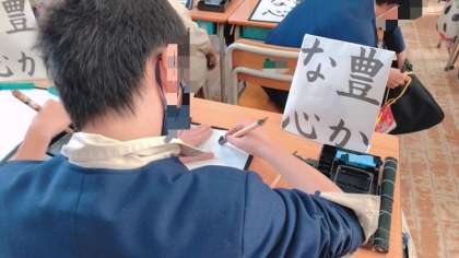 6年生の書写です。「豊かな心」を書いていました。真剣に、ゆっくり、丁寧に筆を動かしていました。