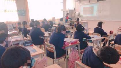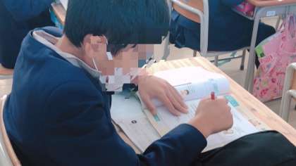 5年生の理科です。振り子運動の学習でした。先生が振り子運動の大事なポイントを説明していました。教科書の説明部分にも赤線を引いておきます。