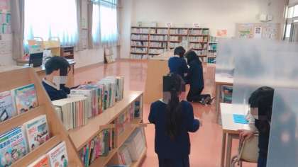 1年生の図書の時間です。めいめいが静かに読んでいます。読んだ本は読書カードに記録します。