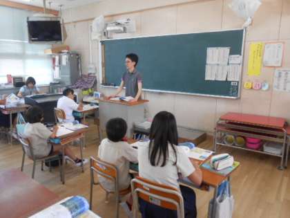 先生の緊張が伝わっているのか、子どもも先生に協力的です。