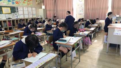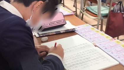 4年生の国語です。漢字学習でした。ドリルとノートを使ってたくさん反復練習して憶えていきます。