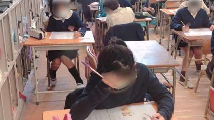 3年生の国語です。テストに取り組んでいました。今までの学習の成果を発揮できるよう頑張れ!