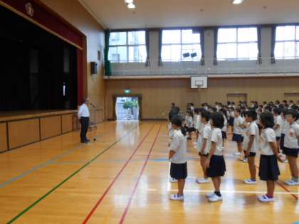 校長先生から、2学期から全学年で英語の学習がはじまることのお話がありました。