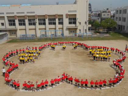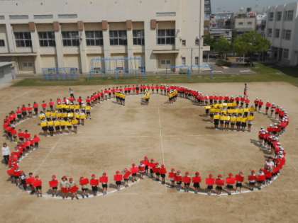 本番を前に校舎の3階からいろいろなポーズで写真を撮りました。
