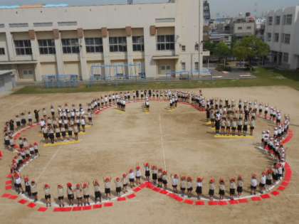 何回も上空を通るヘリコプターに子どもたちは興味津々。