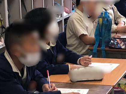 3年生の理科です。昨日した電気を通すものと通さないものを見つける実験の結果を発表し、考察をしていました。