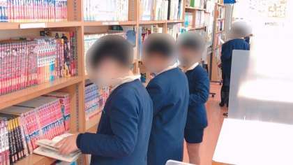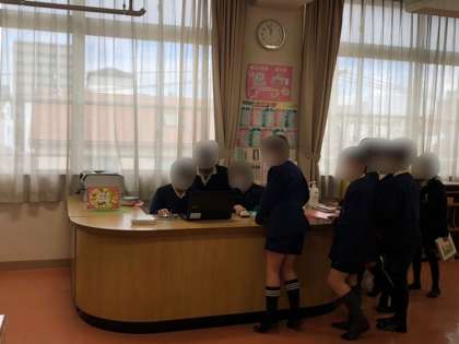 4年生の図書です。借りたい本を選んだら、係のところに持って行ってパソコンで貸し出し登録をしてもらいます。本には全てバーコードが貼ってあるので読み取り機で「ピッ」とすると登録ができます。