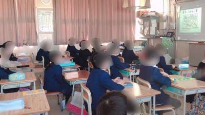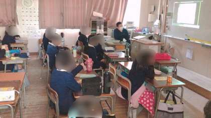 上段が2年生、下段が3年生の防災学習の様子です。1年生と同じくオンライン学習です。とても静かに見入っていました。