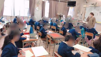 3年生の図工です。紙版画の制作に取りかかりました。版画にしたい動物の下絵を描いていました。