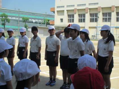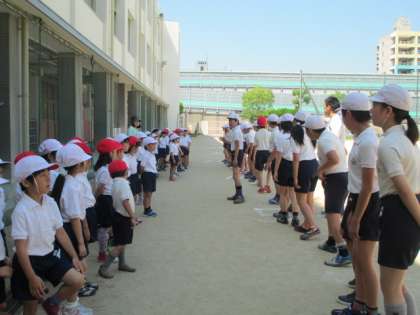 2時間目は、一年生が初めてのソフトボール投げに挑戦しました。