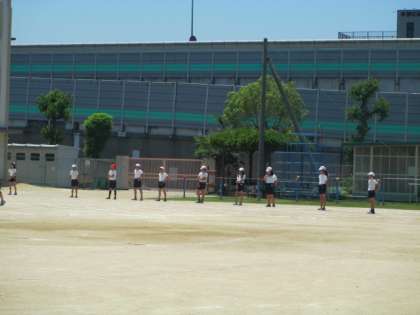 さすが、6年生。ボールを集める係はかなり後方でスタンバイしてます。