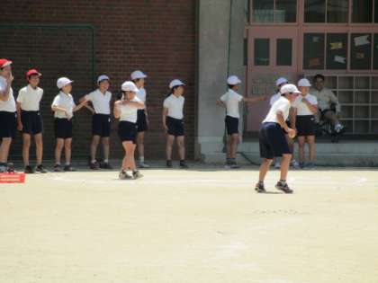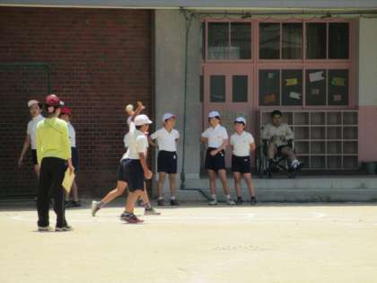 4時間目は、6年1組のソフトボール投げです。
