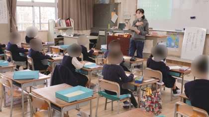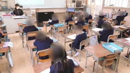 上段が1組。先生の説明を受けながら学校アンケートに回答していました。