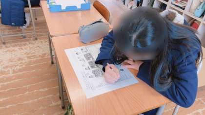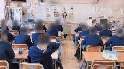 6年生の栄養指導です。「よく噛んで食べよう!」という題材です。昔と今の食事の献立と噛んでいた回数などを調べ、よく噛んで食べることの大切さを学びました。