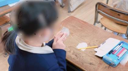 1年生の学活です。卒業を祝う会の準備をしていました。卒業生へのメッセージを書いていました。とても一所懸命で、自分が書いたメッセージを見直してこれでいいかしっかり考えていました。