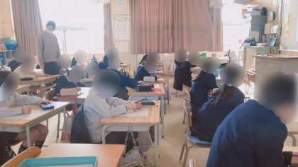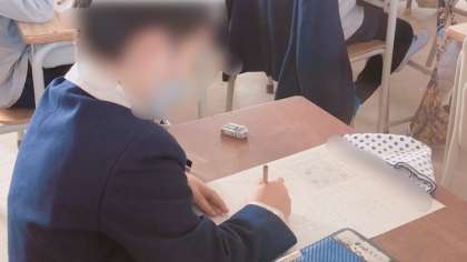 2年生の算数です。テストに挑戦していました。真剣に取り組んでいました。
