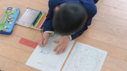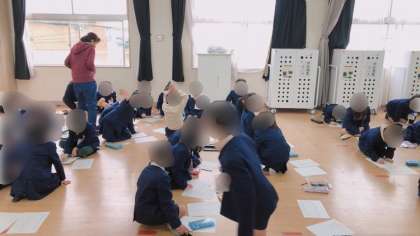 1年生の英語学習です。自分が将来なりたい職業を英語と絵で表していました。