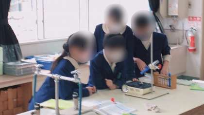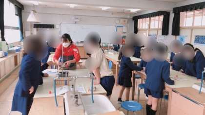 4年生の理科です。物のあたたまり方の実験です。火を扱うので慎重に進めていました。