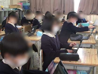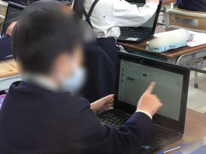 2年生の様子です。端末を使ってタブレットドリルに取り組んでいました。