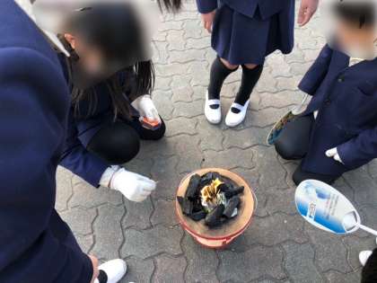 先生の「スイッチ一つで火がつく調理器具がある今と違って、昔の人は調理一つにもとても苦労があったんだよ」という言葉に、子どもたちは大きくうなずいていました