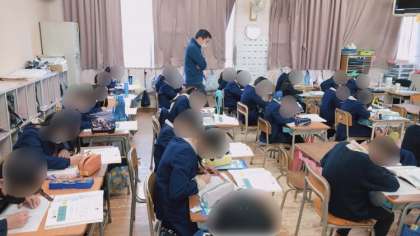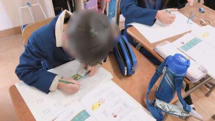 3年生の算数です。練習問題に取り組んでいました。とても静かで真剣な雰囲気でした。
