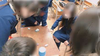 消しゴムを使ったゲームをしている子たちもいました。中には、「早く赤旗取れないかなあ」と恨めしそうに運動場を眺める子たちも・・・。