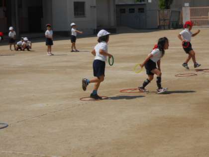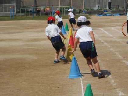 途中に置いてある円の中でケンケンを