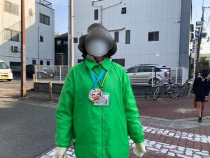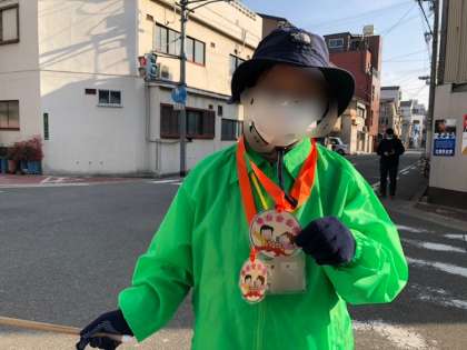 これまでの見守り活動のお礼として、卒業する6年生児童から隊の皆さんに感謝のメダルをお渡ししました。6年間、雨の日も風の日も見守ってくださり、本当にありがとうございました。