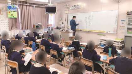 3年生の算数です。プリントの答え合わせをしていました。