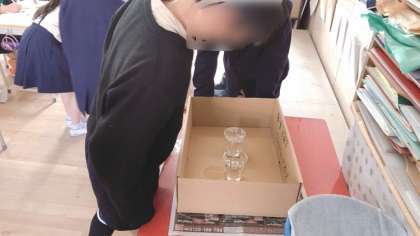 4年生の理科です。「水のゆくえ」の単元で実験をしていました。