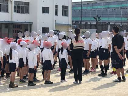 2年生と6年生が合同で体育をしました。鬼ごっこ遊びやサッカー遊びを楽しみました。6年生は2年生が楽しめるよう考えながら、2年生は6年生に負けないようにしっかり体を動かして、どの子もとても楽しそうでした。とてもいい時間でした。