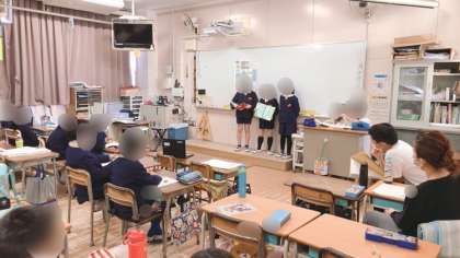 3年生の様子です。グループで調べた外国のことを紹介していました。とてもハキハキとした喋り方でわかりやすかったです。司会の人も上手でした。