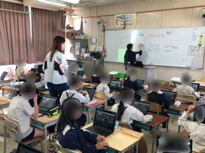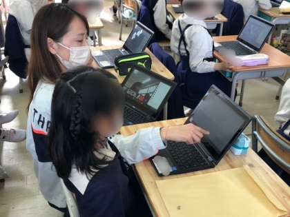 2年生の様子です。タブレットを使ってリモート会議ができるように練習していました。サポーターさんの手も借りて頑張っていました。