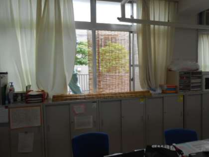 職員室の窓に簾を付けていただきました。