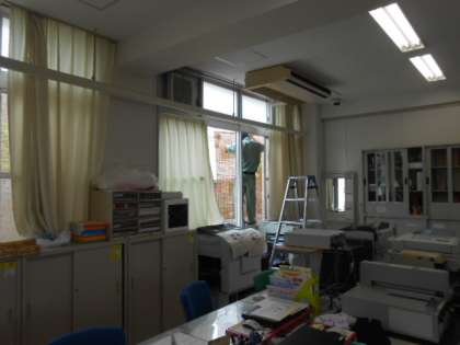 職員室の窓が…