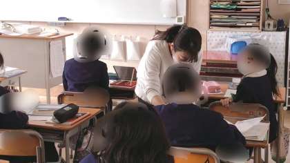 4年生の様子です。二十歳の自分に向けたメッセージを書いていました。封筒に入れて大切に保管しておくそうです。