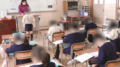 1年生の国語です。漢字ドリルに取り組んでいました。間違えた字をしっかり書き直して憶えていきます。