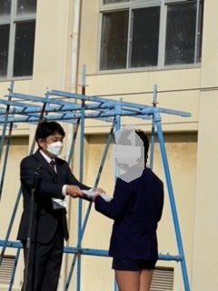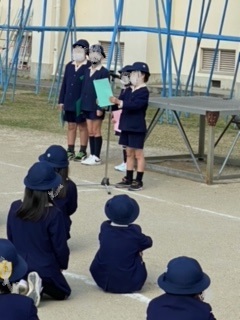 今日は修了式の日です。1年の締めくくりをみんなでしました。児童代表の5年生に修了証を手渡した後、3学期の思い出を代表の子たちが読み上げました。