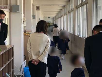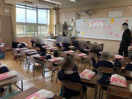 無事、入学式が終わり、教室に帰って少しホッとした様子の1年生たちです。