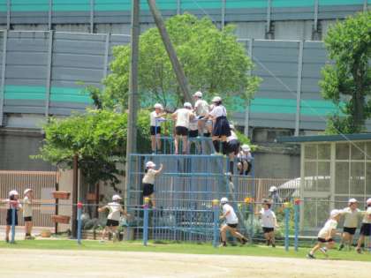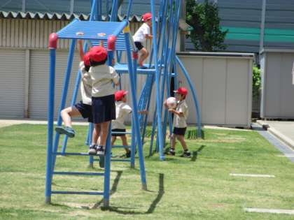 休み時間です。元気に外へ出てきて一番に飛びつくのは、やっぱり遊具です。