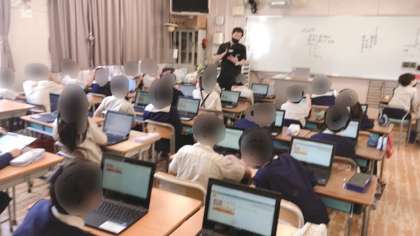 4年生の様子です。タブレットのスクールライフノートを開いていました。
