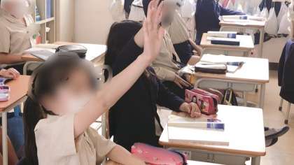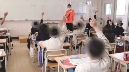 5年生の算数です。先生の質問にたくさんの手が挙がっていました。