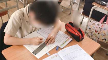 6年生の算数です。算数ドリルを使ってめいめいのペースで学習を進めていました。