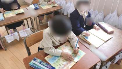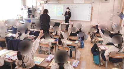 1年生の様子です。算数です。先生の質問に1年生も元気よく挙手していました。