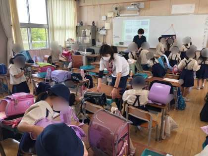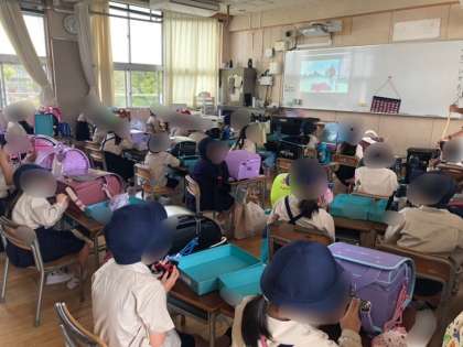 帰る用意をしていました。全員、用意が終わったので英語の動画を観ています。もうすぐ下校時刻です。