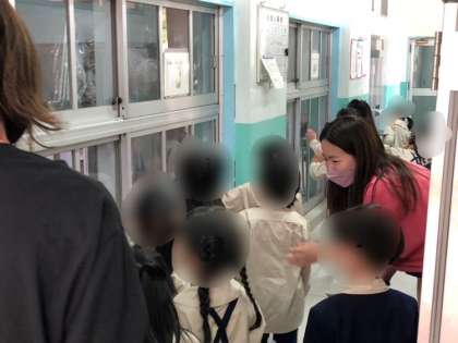 1年生の様子です。生活科の学習で学校探検をしました。校内の色んな場所を探検しました。授業中の教室に入らせてもらいました。給食室にも初めて入りました。みんな、興味深々です。