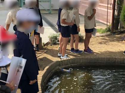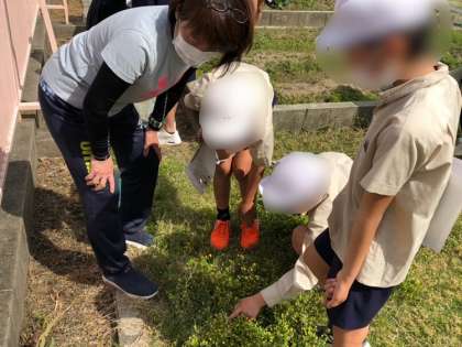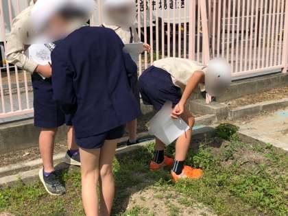 4年生の理科です。春の生き物探しをしていました。見つけた生き物は記録していました。